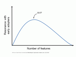 The phrase Minimum Viable Product is a product development and release methodology pioneered by Eric Ries as part of a long series about Lean Startup companies. Its main tenet is the development and early release of only the core of your product, allowing the marketplace to vet and feedback on its pros and cons. While the developer still has a roadmap of their own, risk is mitigated as feature has an already receptive audience and the product offering more tightly focused when the core is released early and iterated upon often, in response to real customer feedback.